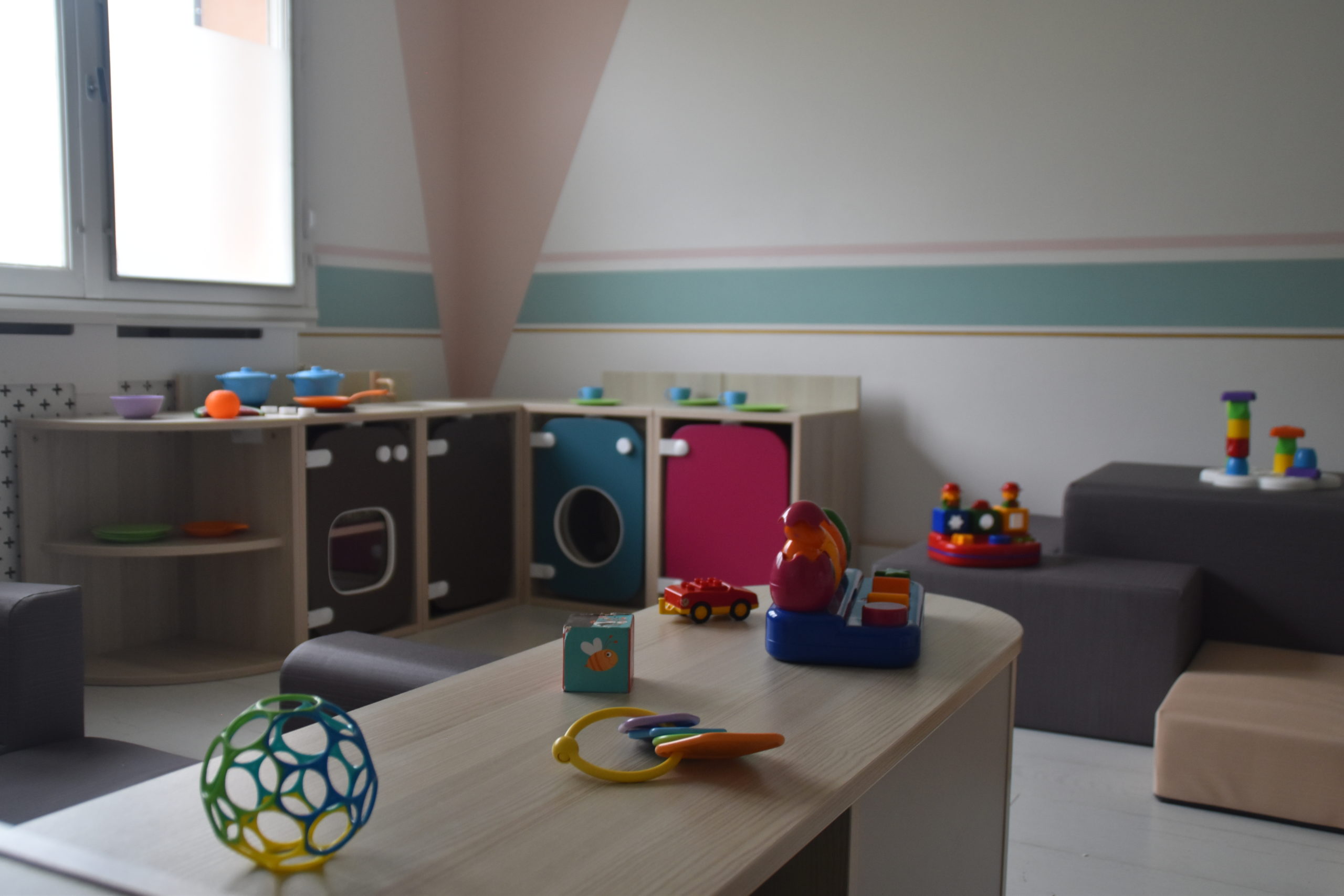 La capacité d’accueil des crèches est au total de 10 places simultanément par structure. Cette petite taille d’établissement correspond à un véritable choix pédagogique. Nous souhaitons pouvoir proposer aux familles un espace de vie pour leurs enfants réunissant à la fois les avantages de l’accompagnement individualisé ainsi que ceux liés à la vie en collectivité. La salle de vie est organisée par âge et par type de jeux :
